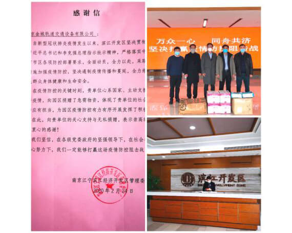 ![]() 集團(tuán)多次向江寧濱江開發(fā)區(qū)管委會捐贈(zèng)口罩、防護(hù)服、橡膠手套等戰(zhàn)“疫”急用物資。 |