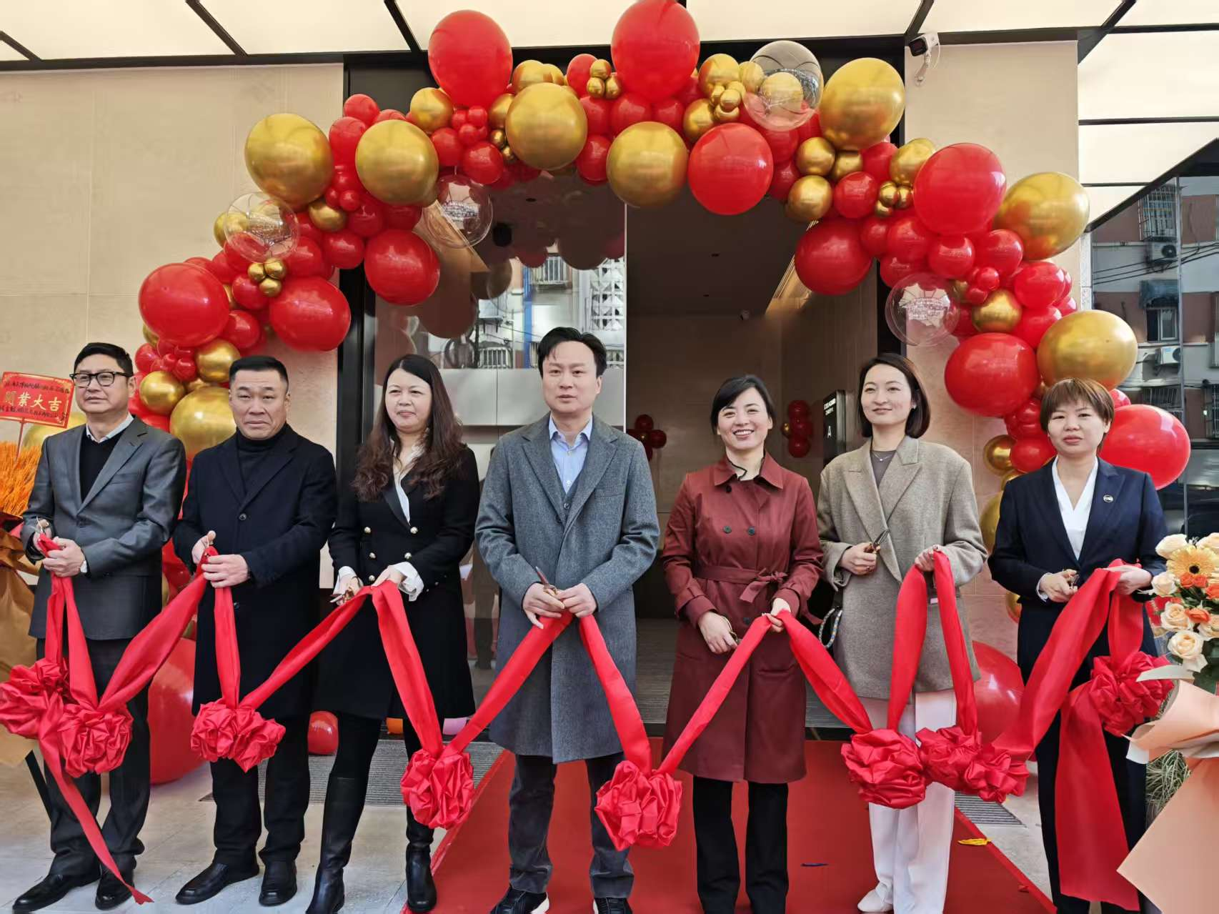 ↑蘇商集團董事長、總經理和高管等熱烈祝賀開業(yè)大吉
