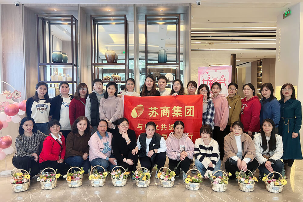 “人間最美三月天,春花爛漫展新顏。”在這春回大地、萬物復(fù)蘇的美好時(shí)節(jié),世界女性迎來了第113個(gè)“三八國際婦女節(jié)”。為慶祝女性節(jié)日、致敬女性力量、展現(xiàn)女性風(fēng)采,豐富廣大女員工的文化生活,蘇商集團(tuán)工會(huì)于3月8日下午在物華亞朵酒店舉辦了以“茶道+花藝”為主題的手工沙龍活動(dòng),以滿滿的儀式感祝福女員工節(jié)日快樂,來自集團(tuán)三大事業(yè)部不同崗位的30余名女員工參加了活動(dòng)。